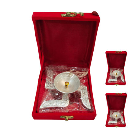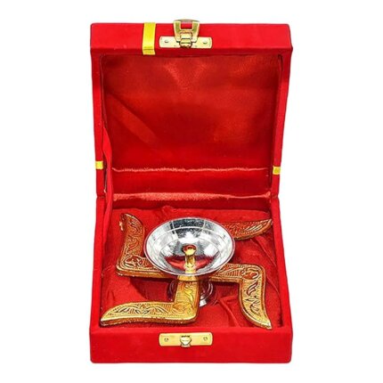 Brass Swastik Shape Diya Religious Antique with Velvet Box for Temple Pooja Articles Home Office & Table Decor Diwali Decoration Deepak Items Best Return Gift(Pack of 2)