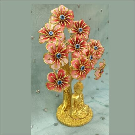 Lord Buddha Statue on Cream Evil Eye Tree | Good Luck Charm and Protection for Office and Home, Ideal for Vastu and Feng Shui