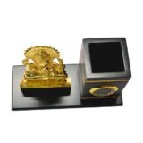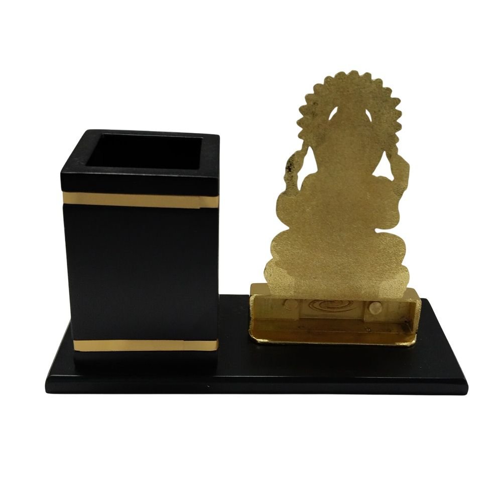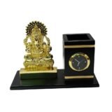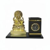 The finely detailed Lord Ganesha idol symbolizes wisdom, success, and good fortune, making it perfect for professional environments. The built-in analog clock helps you keep track of time, while the pen stand ensures a clutter-free workspace. Its sleek black base with gold accents adds a sophisticated touch to any office or home desk.