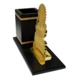 Enhance your workspace with this elegant Metal Table Pen Stand featuring a built-in clock and a beautifully crafted Lord Ganesha idol. Designed with a premium black and gold finish, it blends spirituality with utility, making it ideal for office desks, corporate gifting, and festive occasions.