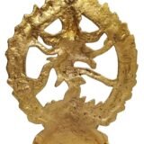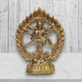 This Metal Wall Hanging Plate Plaque of Nataraja beautifully represents Lord Shiva in his iconic cosmic dance (Tandava), symbolizing creation, preservation, and destruction. Designed within a detailed ring of fire, this golden-finish idol reflects traditional Indian craftsmanship and spiritual symbolism.