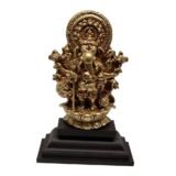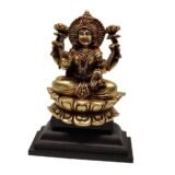 This graceful sculpture of Sri Lakshmi Thayar is beautifully handcrafted on Fine Fibre Material with Golden Finish size of about 5 inches height, Sri Lakshmi seated on a Lotus Pedestal to place on Table Top safely as a special Decorative showpiece to get a divine feel at Home / workplace Décor and Pooja worship.