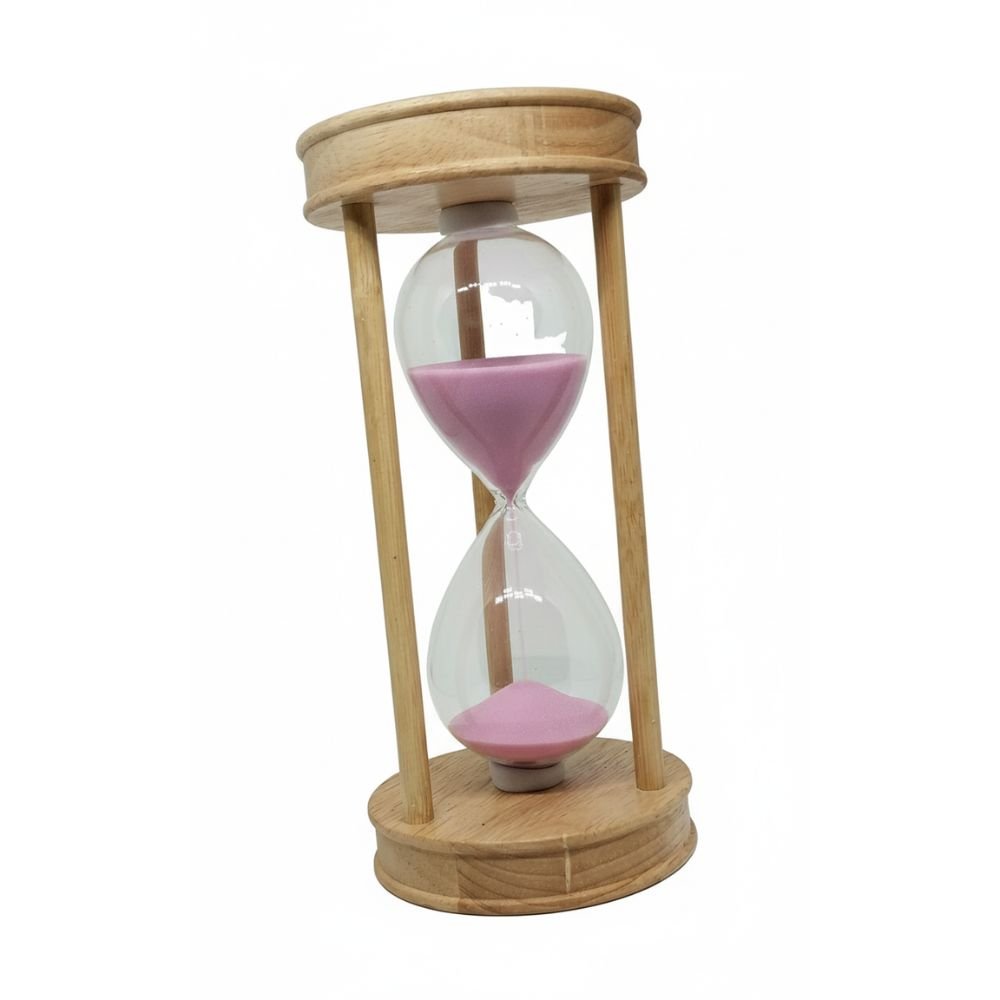 Bring timeless charm to your space with this classic wooden sand clock. Crafted with a sturdy natural wood frame and a transparent glass hourglass, it allows smooth flow of fine pink sand for a calming visual experience.