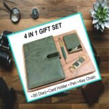 Premium 4 in 1 gift set featuring a stylish diary, smooth-writing pen, elegant card holder, and durable metal keychain. Perfect for men and women, this versatile set suits office use and gifting. Ideal for Christmas, New Year, corporate gifting, and special occasions for doctors, husbands, and fathers.
