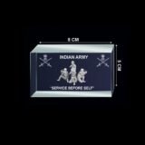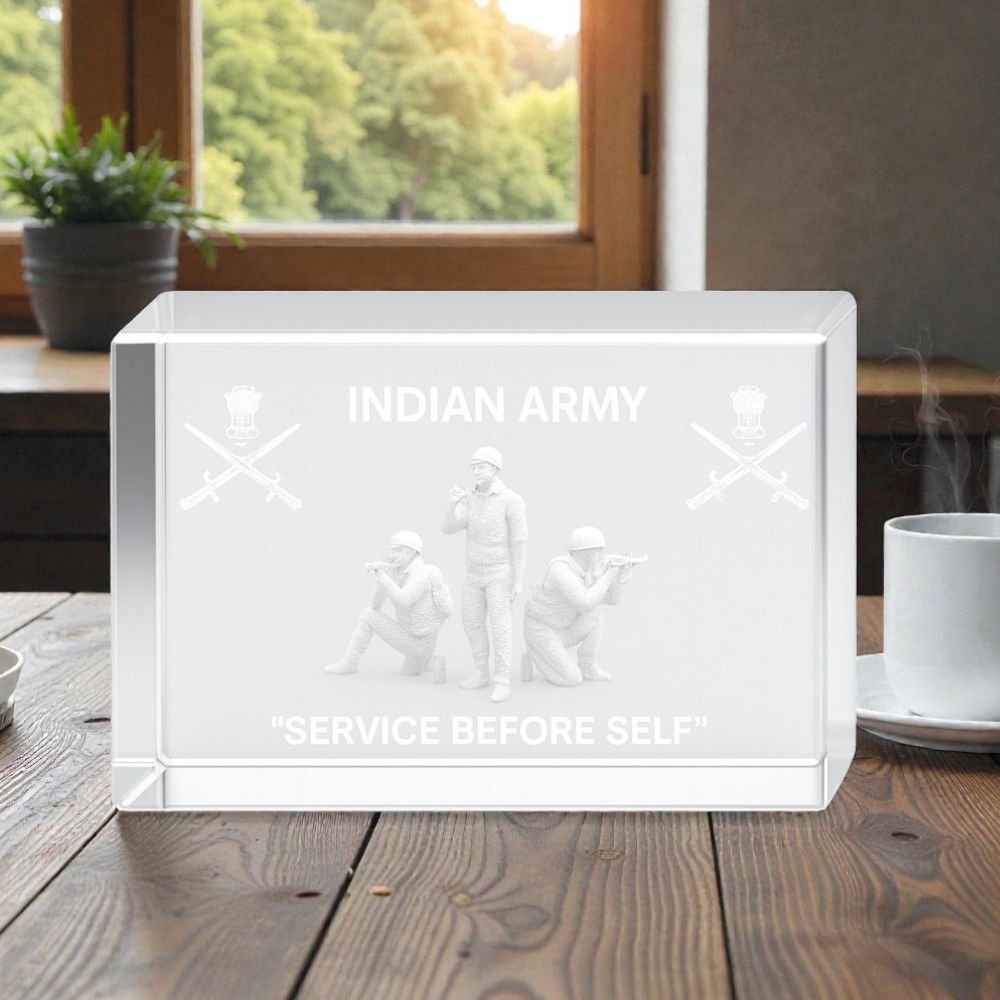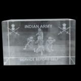 Premium clear crystal cube featuring single-face 3D photo engraving of the iconic Statue of Unity. Crafted with precision for a stunning depth effect, it comes with a free LED light base that enhances brilliance. A perfect elegant décor piece, souvenir, or premium gift from Crystal Crafts Indian Defence.