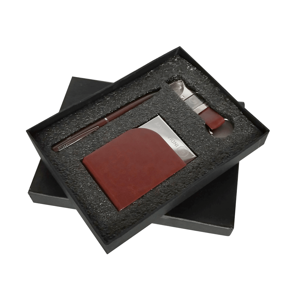 - 3-in-1 Gift Set with card holder, pen, and keychain