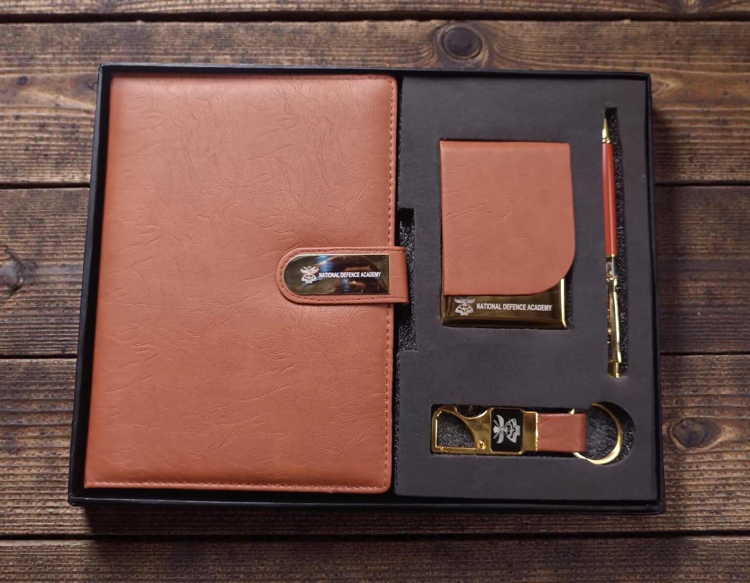 4 in 1 Personalized PU Leather Diary with Pen, Card Holder and Metal Keychain Gift Set with Name, Personalised Gift Set for Doctor, Husband, Father, New Year, Corporate Gift for Defence