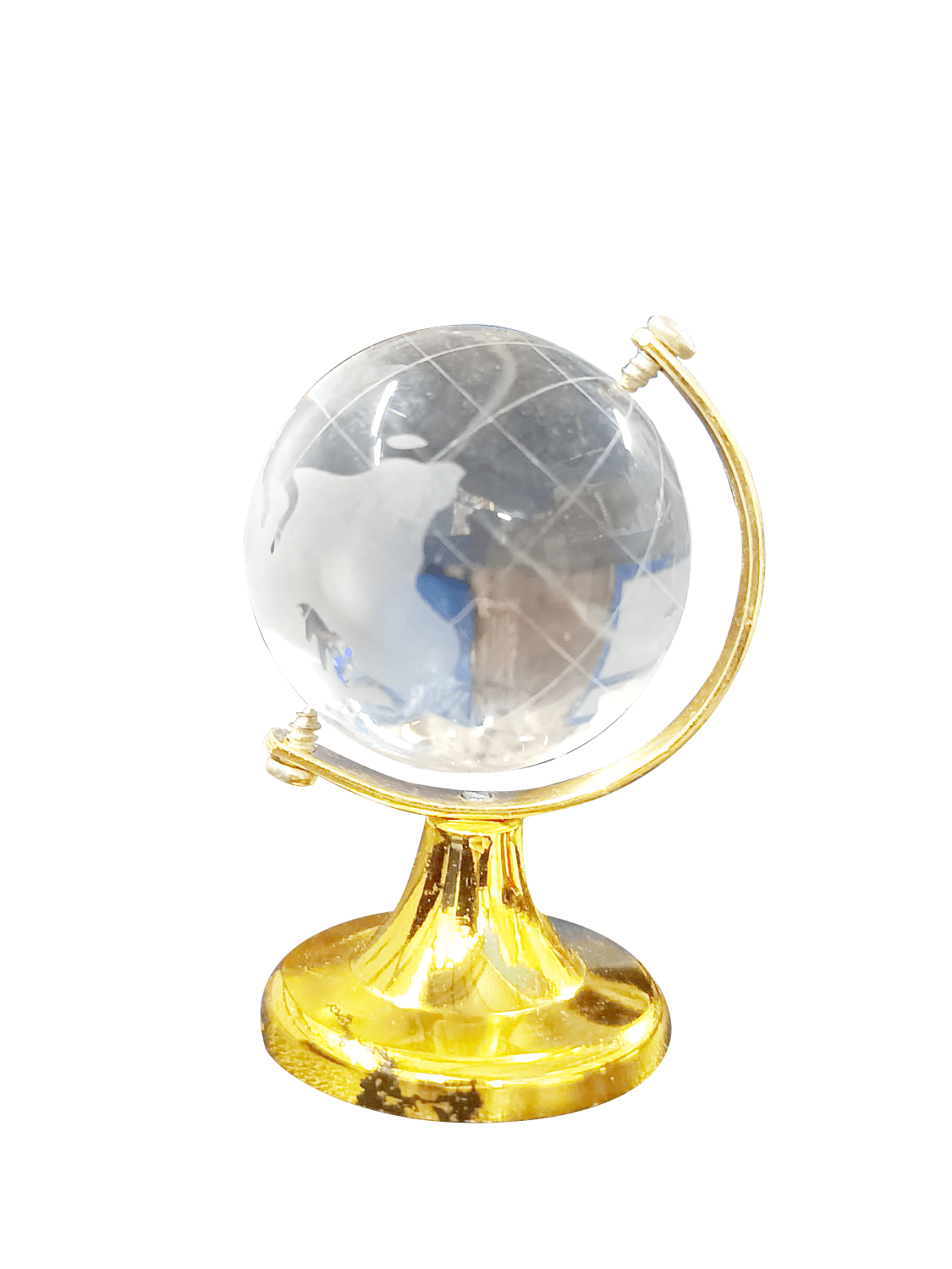 A stunning 1.5″ crystal globe with intricate world map detailing, ideal for home and office decor or gifting.