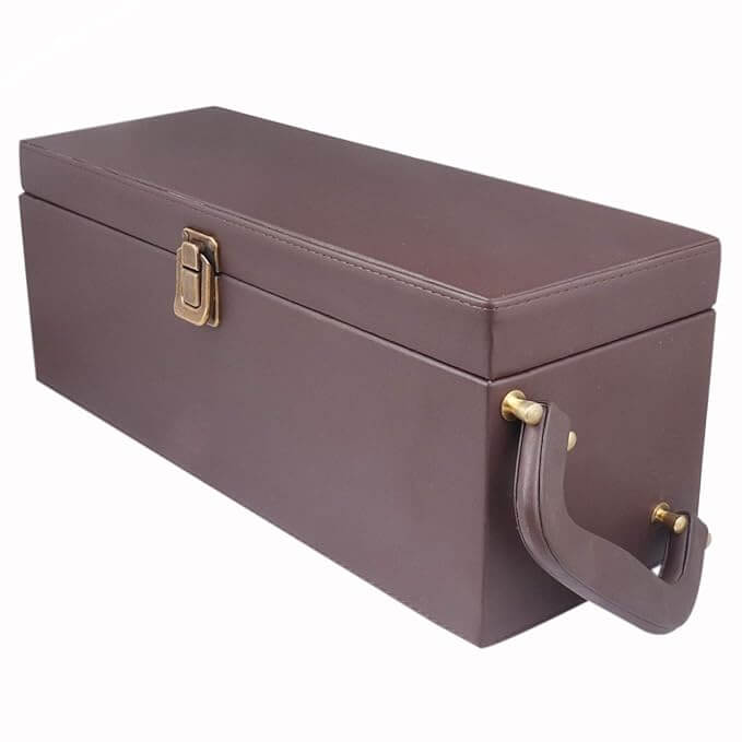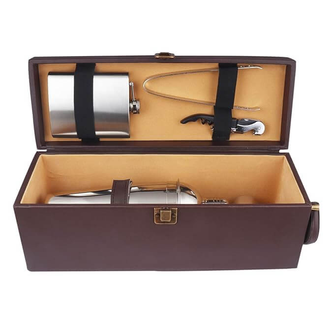 Faux Leathers Travel Bar Set | Portable Leatherette Bar Set | Wine Case | Whisky Case | Wooden Bar Set for Picnic | Portable Bar Accessories Set (Brown)