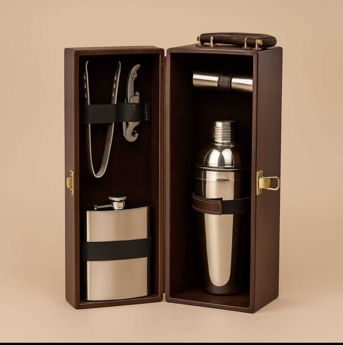 Elevate your bartending experience with this luxurious Bar Tool Set, elegantly packed in a leather-finished wooden case with a sturdy handle. Perfect for travel, gifting, or home bars, this set combines style, functionality, and craftsmanship.