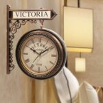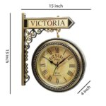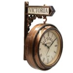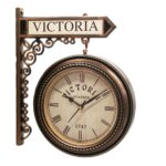 Golden Plastic Wooden Pattern Replica Dual Side Victoria Station Wall Clock Hanging Style Platform Railway Clock Home Decor (Copper) (Length 33 cm, Width 10 cm)