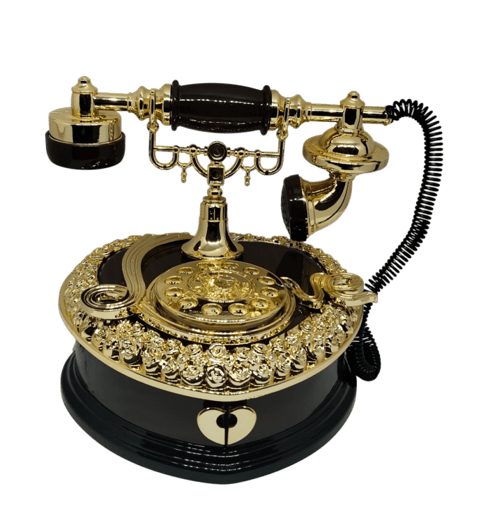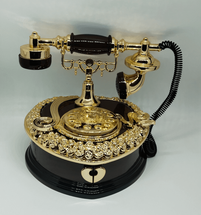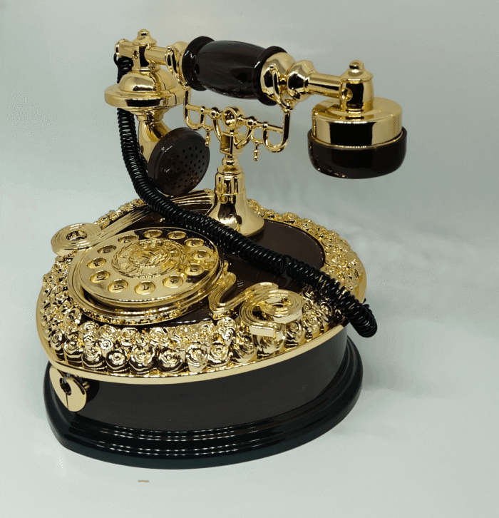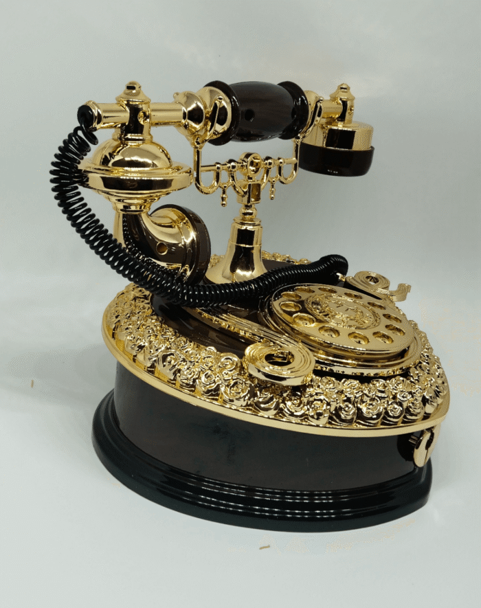 Classic Retro Phone Model – Antique-style decorative telephone with luxury golden detailing.