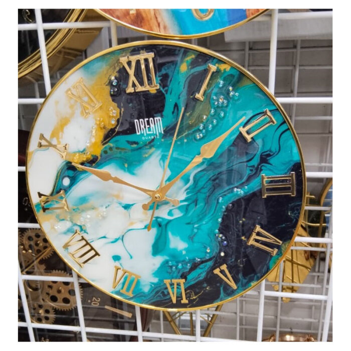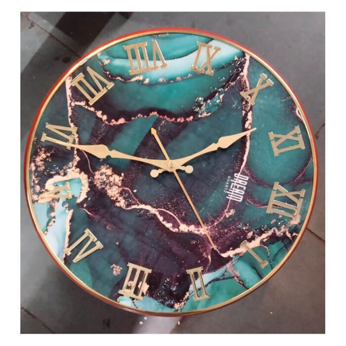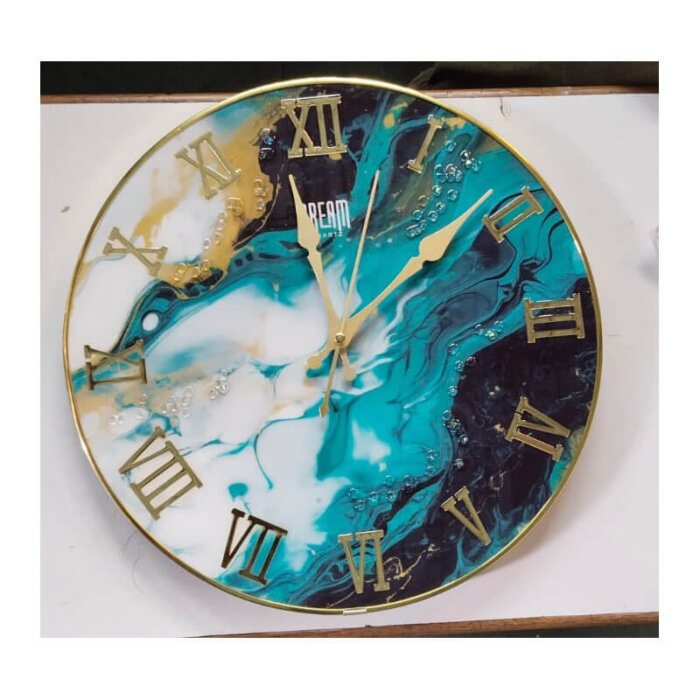 Add a touch of sophistication to your home décor with this stunning Luxury Resin Art Wall Clock. Designed with a mesmerizing blue, white, and gold marble swirl pattern, this elegant clock features premium gold Roman numerals and matching hands that exude timeless charm. The smooth resin finish gives it a glossy, high-end look—perfect for living rooms, offices, and modern interiors.