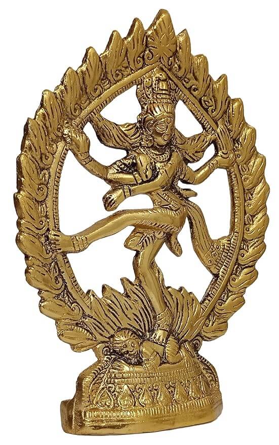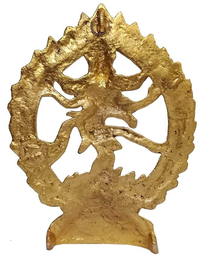Metal Wall Hanging Plate Plaque Nataraja: Golden Idol Of Siva In Cosmic Dance Inside A Ring Of Fire 9 inch