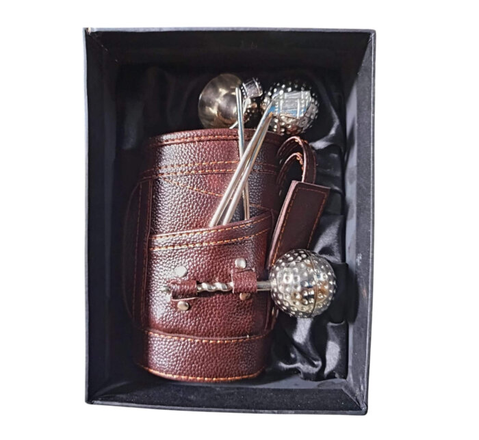 Silver Stainless Steel Golf Bar Set with Beautiful Leatherette Bag