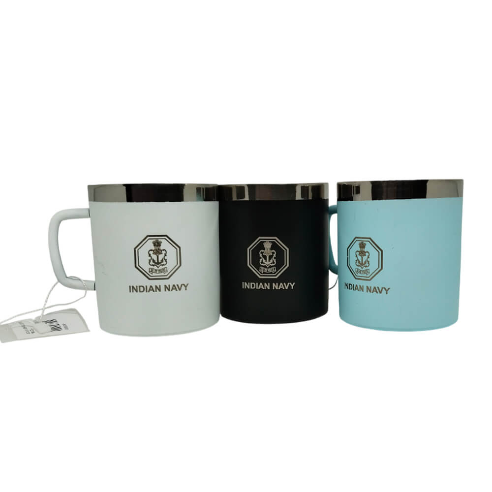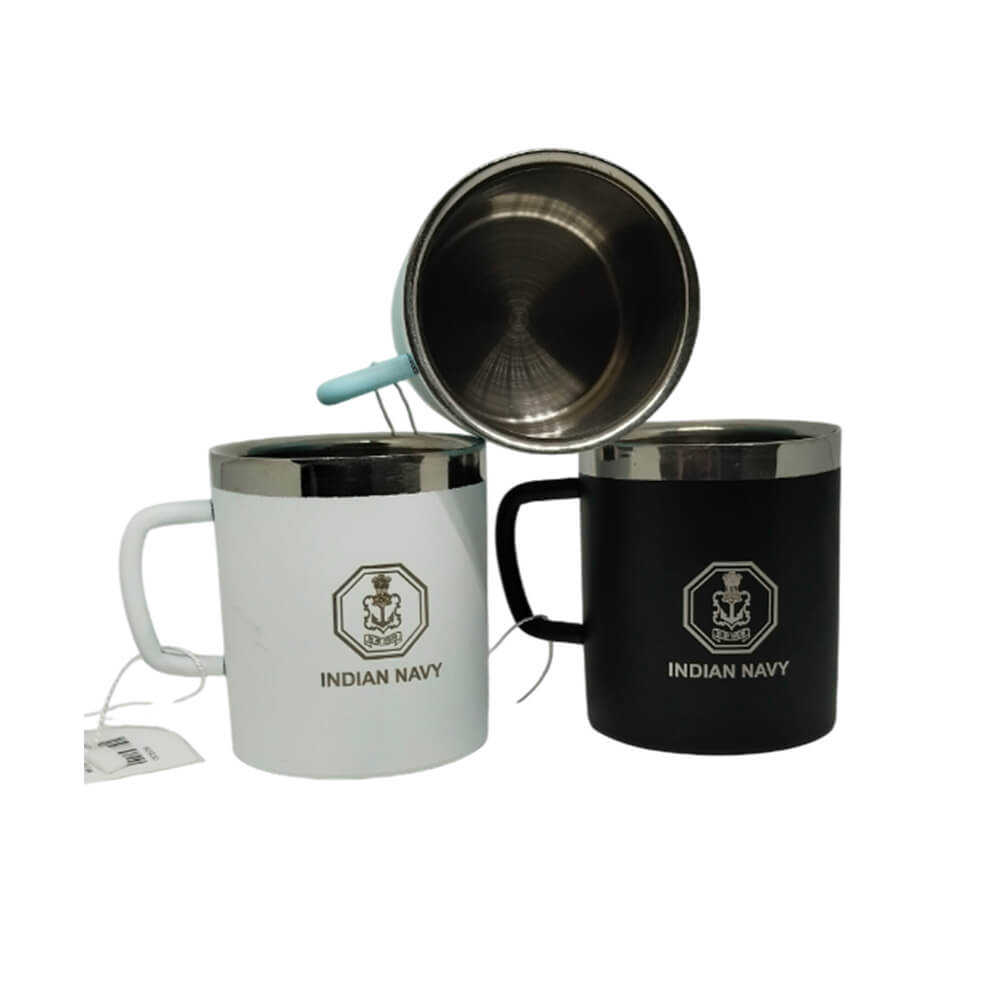 Stainless Steel Double Wall Coffee Mug 300 ml_ Navy logo Engraved