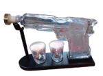 Whiskey Decanter Creative Gun Pistol Shaped Crystal Glass Decanter with 2 Shot Glass & Stand Wine Dispenser for Liquor Bourbon or Wine (9oz)