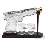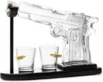 King & I Whiskey Decanter Creative Gun Pistol Shaped Crystal Glass Decanter with 2 Shot Glass & Stand Wine Dispenser for Liquor Bourbon or Wine (9oz)