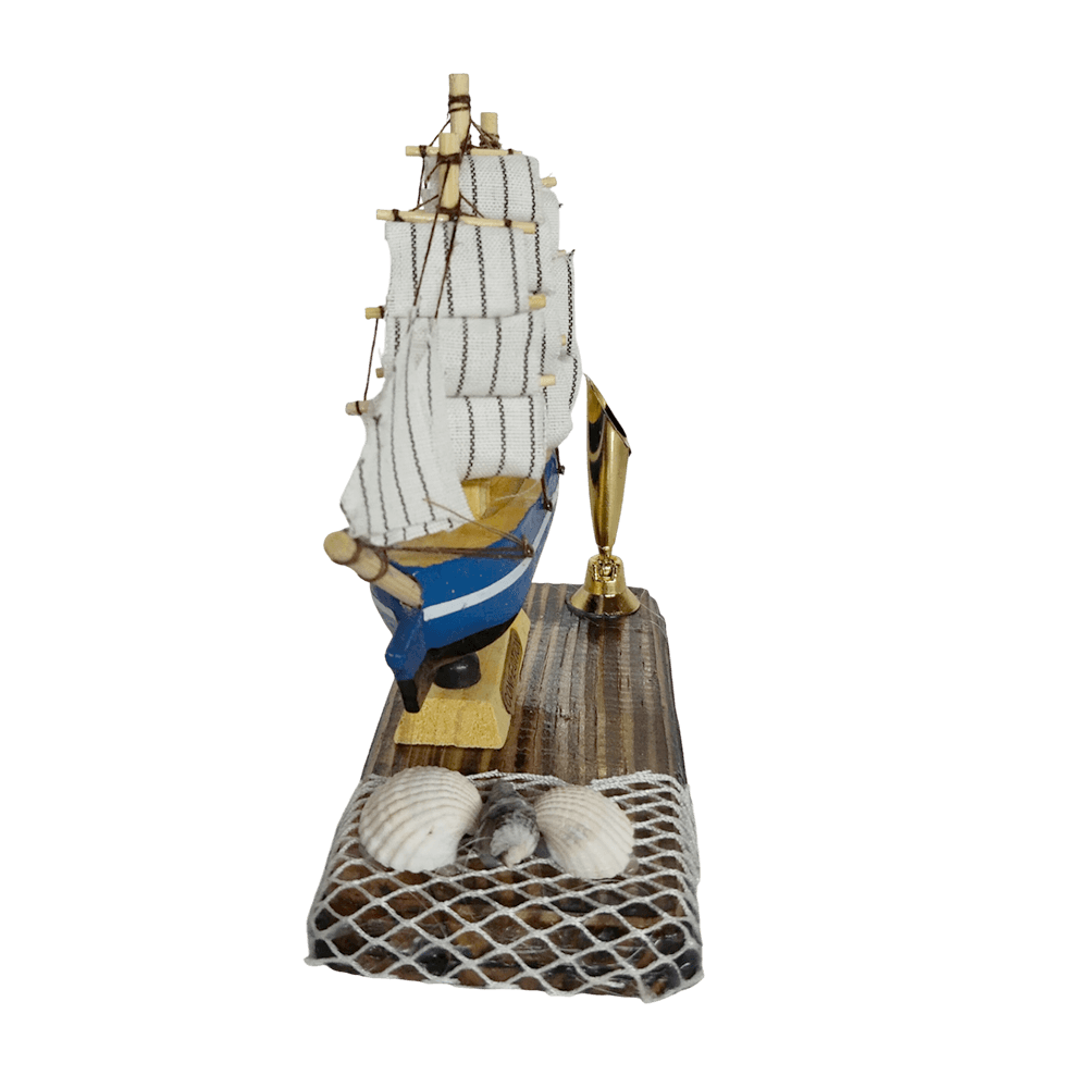 Wooden Sailboat Souvenir with Shell Accents – Coastal Home & Office Décor I for Collectors I Ideal for Home & Office Use